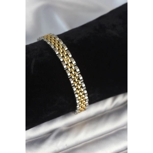 316L Çelik 9 mm Kalınlıkta Gold ve Gümüş Renkli Erkek Bileklik