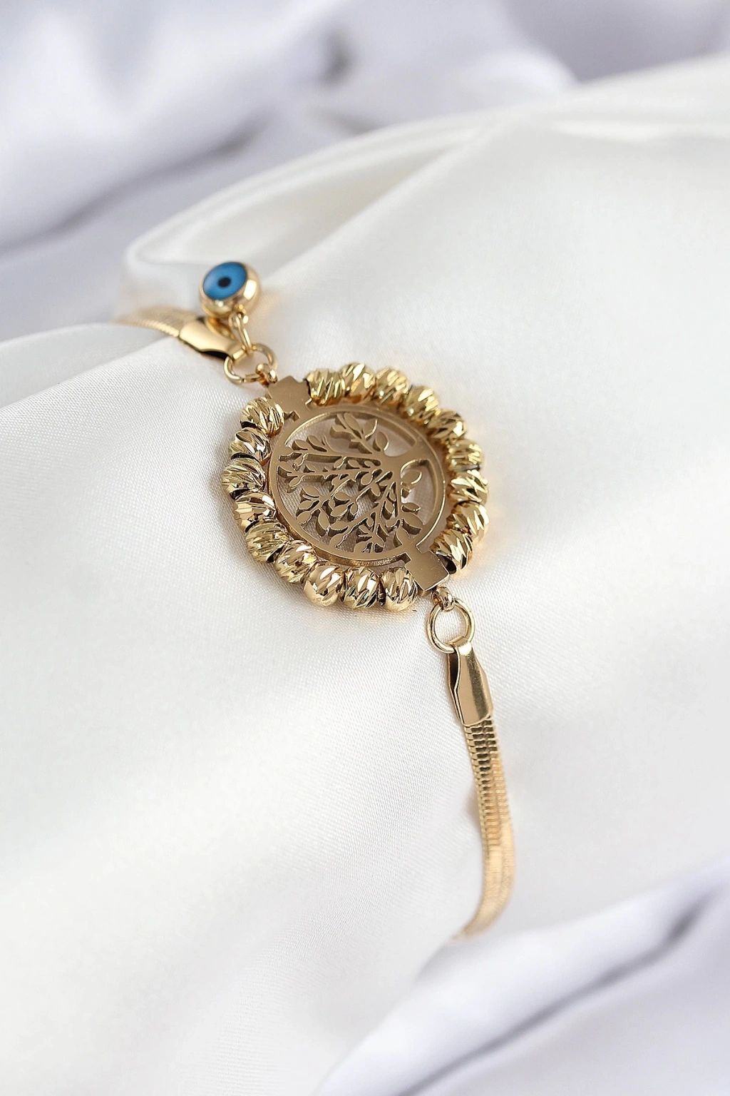316l Çelik Nazar Boncuk Detaylı Hayat Ağacı Model İtalyan Zincir Gold Renk Kadın Bileklik