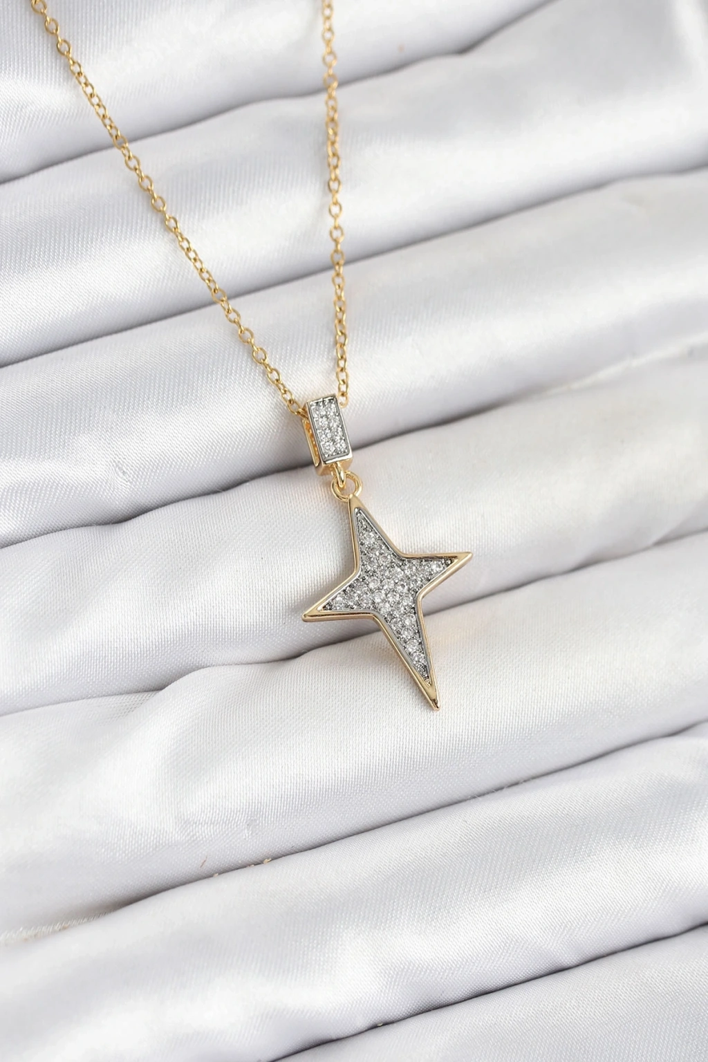316l Çelik Zincir Gold Renk Kutup Yıldızı Model Zirkon Taşlı Kadın Kolye