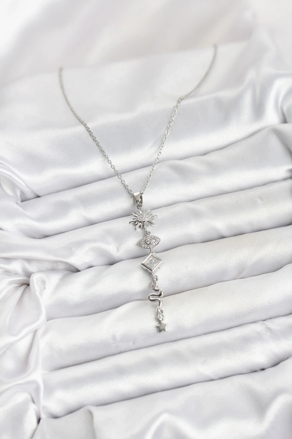 316l Çelik Zincir Gümüş Renk Güneş Ve Enerji Model Kadın Y Kolye