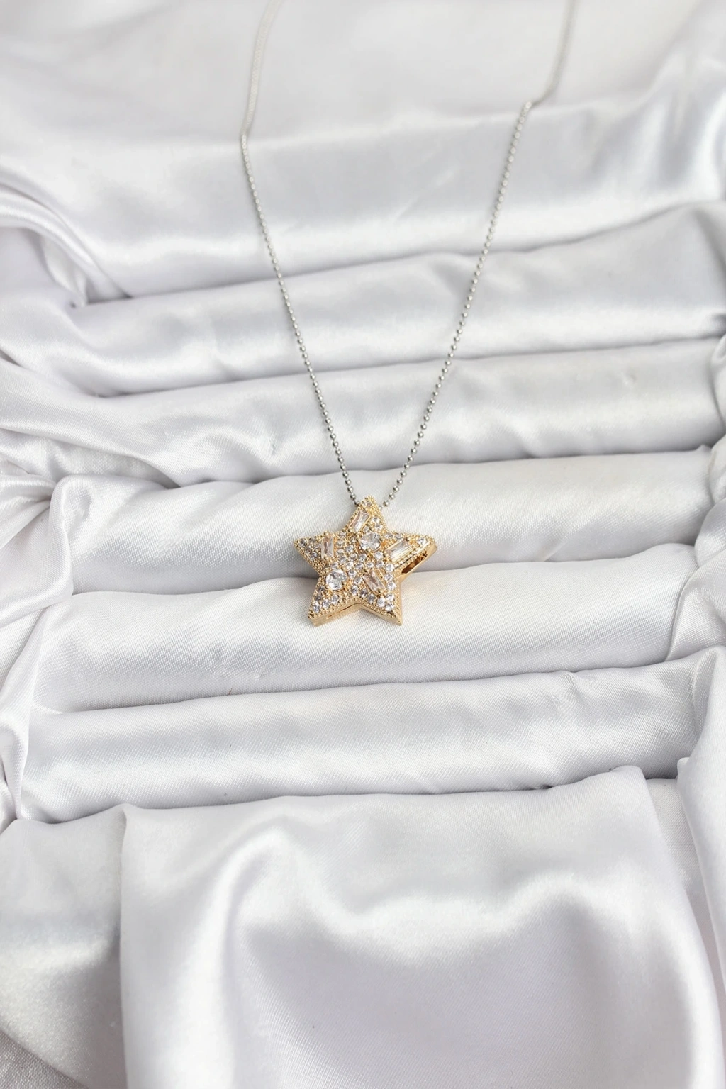 316l Çelik Zincir Gümüş Renk Zincirli Gold Yıldız Model Kadın Kolye