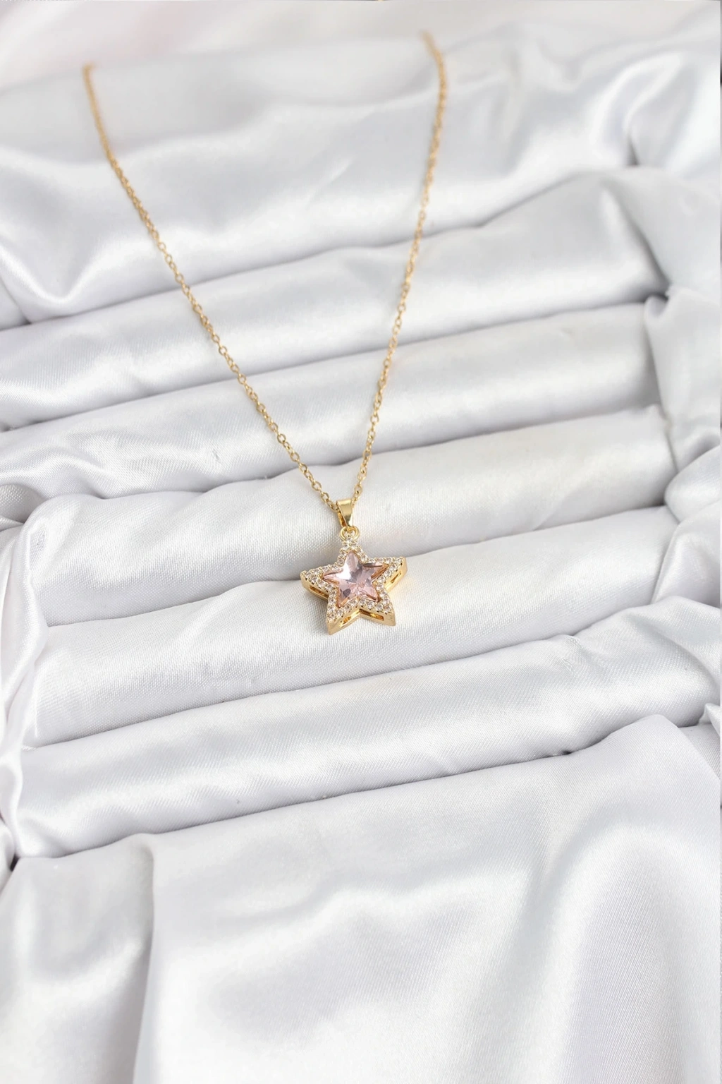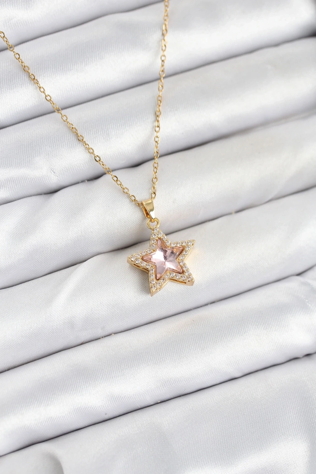 316l Çelik Zincir Pembe Taşlı Yıldız Model Kadın Kolye
