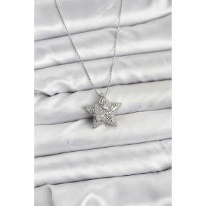 Zirkon Taşlı Kutup Yıldızı Model Pirinç Gümüş Renk Kadın Kolye