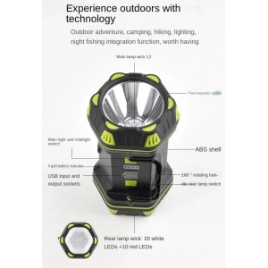 Dayanıklı ABS lastik gövdesi, ergonomik tutma ve kolay kullanımlı düğmesi. Diğer ledlere göre parlak ışık ve düşük tüketimi ile çok daha uzun şarj süresi sağlar.  Alt kısımda bulunan ışıldak, kapalı yada açık alanda geniş açıda aydınlatma sağlar. Askı aparatı ile elde taşınabildiği gibi omuza asılarak da taşınabilir .Zorlu koşullarda, yağmur, toz, çamur gibi çevresel koşullardan etkilenmez.