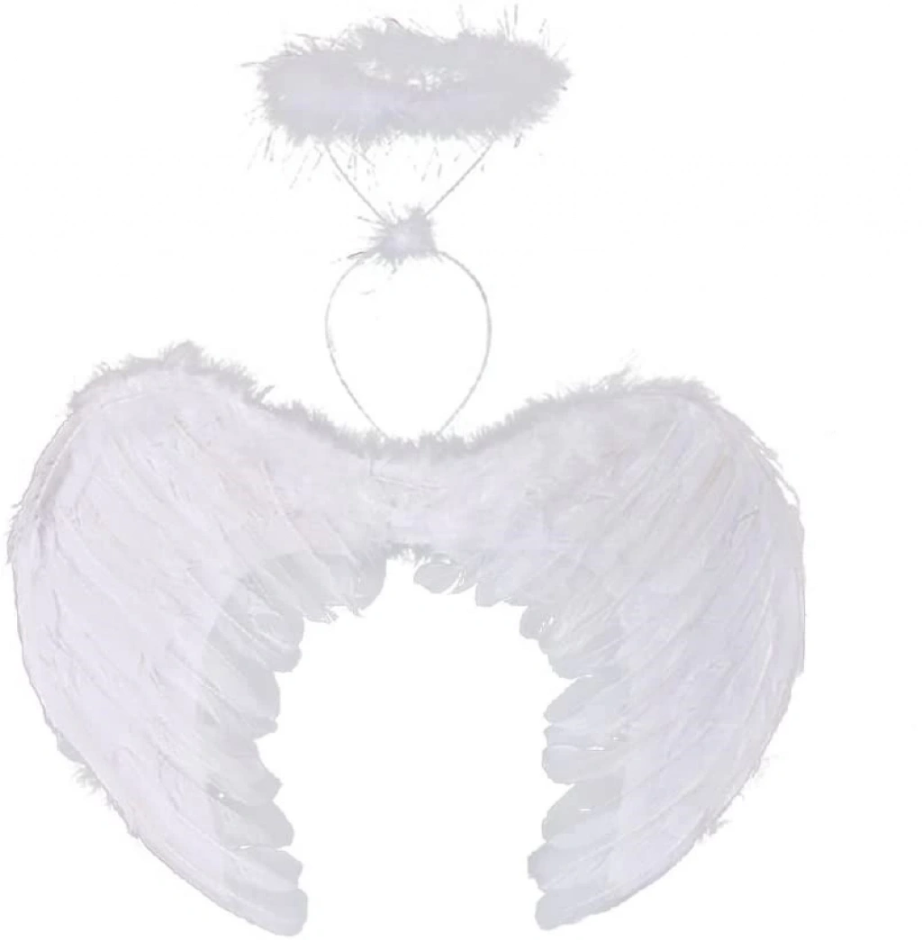 Beyaz Renkli Tüylü Bebek Melek Kanadı Ve Tacı 30x45 Cm