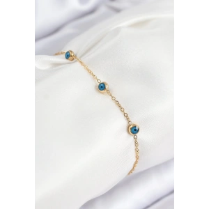316L Çelik Nazar Boncuk Detaylı Mavi Zirkon Taşlı Model İtalyan Zincir Gold Renk Kadın Bileklik
