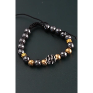 Doğal Taş Sarmal Model Gold Ve Füme Renk Asansörlü Erkek Bileklik