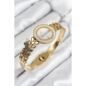 316L Çelik Sıralı Yonca Model Gold Renk Kadın Bileklik