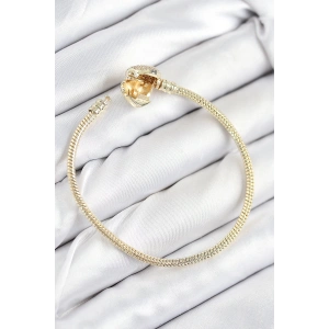 Pirinç Charm Zirkon Taşlı Taç Model Gold Renk Kadın Bileklik