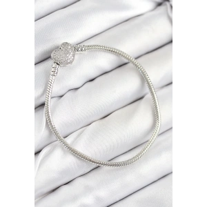 Pirinç Charm Zirkon Taşlı Kalp Model Gümüş Renk Kadın Bileklik