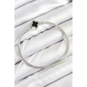 Pirinç Charm Zirkon Taşlı Yonca Model Gümüş Renk Kadın Bileklik