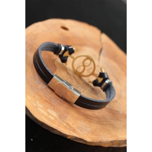 Gold Renk Sonsuzluklu Metal Aksesuarlı Siyah Renk Deri Erkek Bileklik