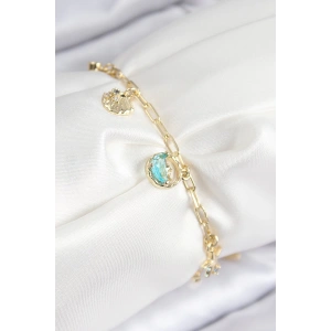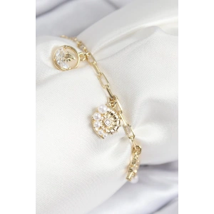 Pirinç Zirkon Taşlı Deniz Kabuğu Model Gold Renk Kadın Bileklik