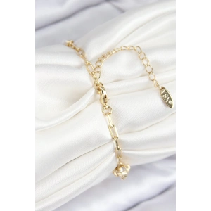 316L Çelik Zirkon Taşlı İnci Model Gold Renk Kadın Bileklik