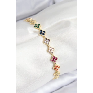 VIP Pirinç Zirkon Taşlı Çiçek Model Gold Renk Kadın Bileklik
