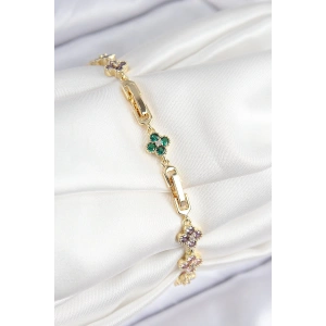 VIP Pirinç Renkli Zirkon Taşlı Yonca Model Gold Renk Kadın Bileklik