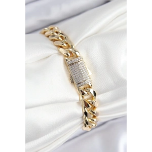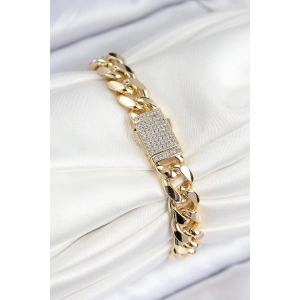 VIP Pirinç Zirkon Taşlı Cuba Model Gold Renk Kadın Bileklik