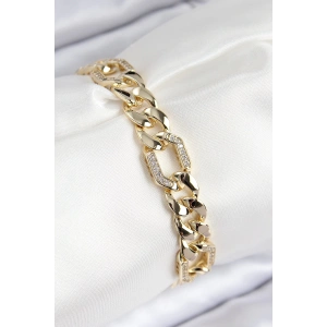 VIP Pirinç Zirkon Taşlı Parçalı Zincir Model Gold Renk Kadın Bileklik