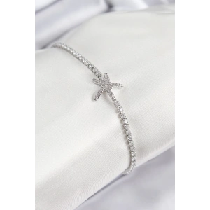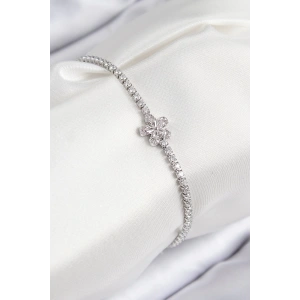 Pirinç Zirkon Taşlı Kelebek Model Gümüş Renk Asansörlü Kadın Bileklik