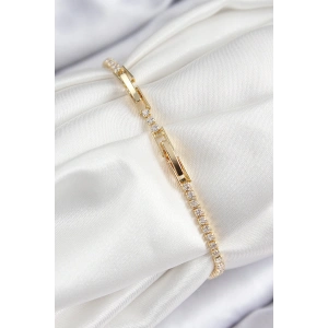 Pirinç Zirkon Taşlı Tennıs Model Gold Renk Asansörlü Kadın Bileklik