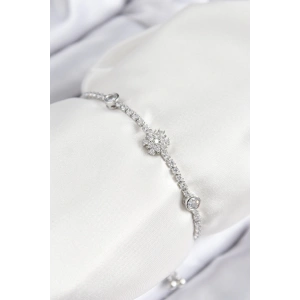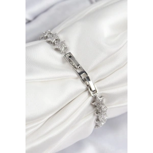 Pirinç Zirkon Taşlı Çiçek Model Gümüş Renk Kadın Bileklik