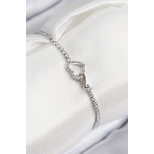 Pirinç Zirkon Taşlı Sonsuzluk Kalp Model Gümüş Renk Kadın Bileklik