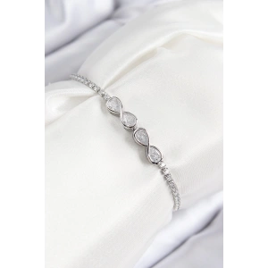Pirinç Zirkon Taşlı Sonsuzluk Model Gümüş Renk Asansörlü Kadın Bileklik