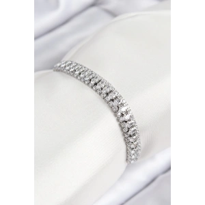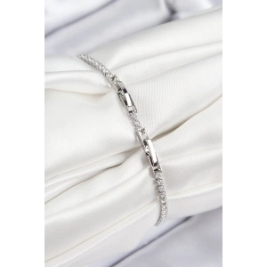 Pirinç Zirkon Taşlı Tennıs Model Gümüş Renk Asansörlü Kadın Bileklik