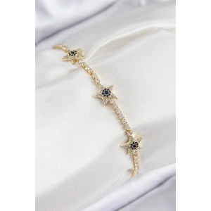 Pirinç Zirkon Taşlı Yıldız Model Gold Renk Kadın Bileklik