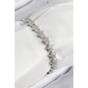 VIP Seri Pirinç Zirkon Taşlı Sıralı Yıldız Model Gümüş Renk Kadın Bileklik