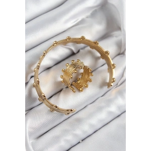 Pirinç Topcuk Model Gold Renk Bileklik Yüzük Set