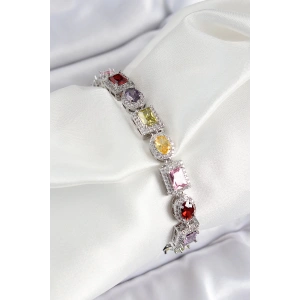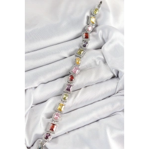 Pirinç Karışık Zirkon Taşlı Baget Model Gümüş Renk VIP Seri Kadın Bileklik