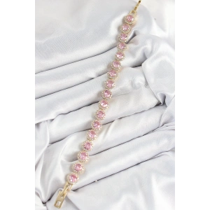 Pirinç Zirkon Taşlı Pembe Yonca Baget Model Gold Renk VIP Seri Kadın Bileklik