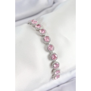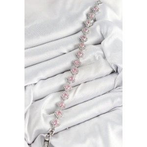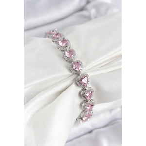 Pirinç Zirkon Taşlı Pembe Kalp Baget Model Gümüş Renk VIP Seri Kadın Bileklik