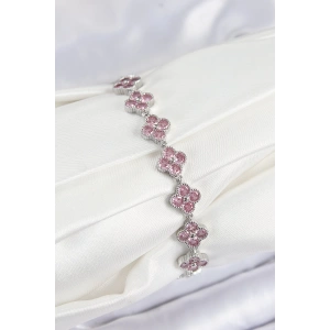 Pirinç Zirkon Taşlı Pembe Yonca Baget Model Gümüş Renk VIP Seri Kadın Bileklik