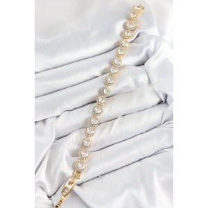 Pirinç Zirkon Taşlı Yarım Topcuk Model Gold Renk VIP Seri Kadın Bileklik
