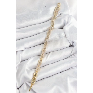 Pirinç Karışık Zirkon Taşlı Baget Model Gold Renk VIP Seri Kadın Bileklik