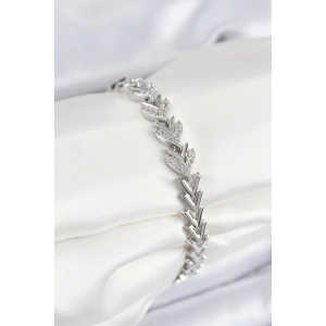 Pirinç Zirkon Taşlı Yonca Baget Model Gümüş Renk VIP Seri Kadın Bileklik