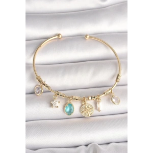 Pirinç Gold Renk Zirkon Taşlı Nazar Boncuk Detay Charm Kadın Bileklik