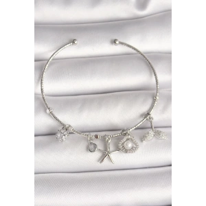 Pirinç Gümüş Renk Sallantı Zirkon Taşlı Deniz Yıldız Figür Balık Kuyruğu Detay Charm Kadın Bileklik