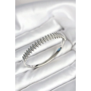 Gümüş Renk Zirkon Taşlı Pirinç Kadın Kelepçe