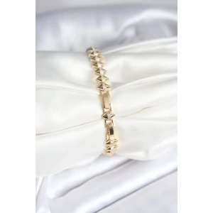 Pirinç Gold Renk Zirkon Taşlı Baklava Model Kadın Bileklik