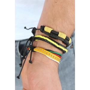 Sarı Renk Zımbalı Deri Erkek Bileklik Kombini