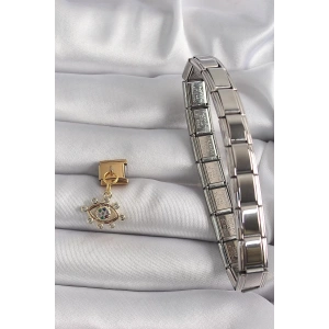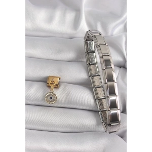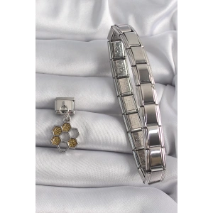 316L Çelik Gümüş Renk Gold Yıldız İşleme Nomination Charm Bileklik