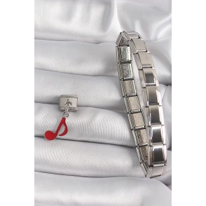 316L Çelik Gümüş Renk Kırmızı Nota Model Nomination Charm