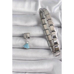 316L Çelik Gümüş Renk Mavi Renk Sallantı Elbise Model Nomination Charm
