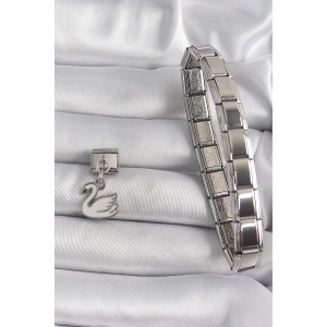 316L Çelik Gümüş Renk Sallantı Beyaz Kuğu Model Nomination Charm