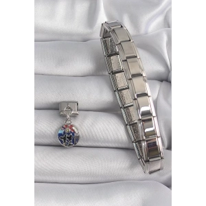 316L Çelik Gümüş Renk Sallantı Dünya Model Nomination Charm