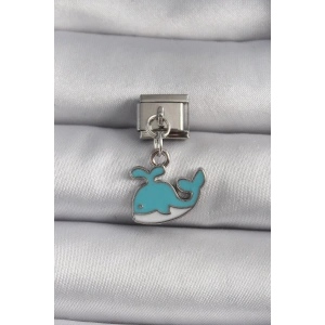 316L Çelik Gümüş Renk Sallantı Mavi Balina Model Nomination Charm