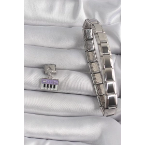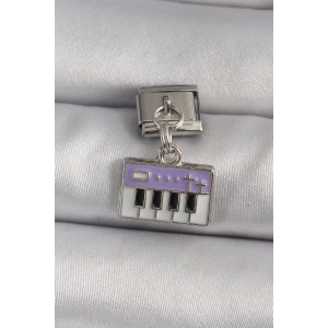 316L Çelik Gümüş Renk Sallantı Mor Piyano Figür Nomination Charm
